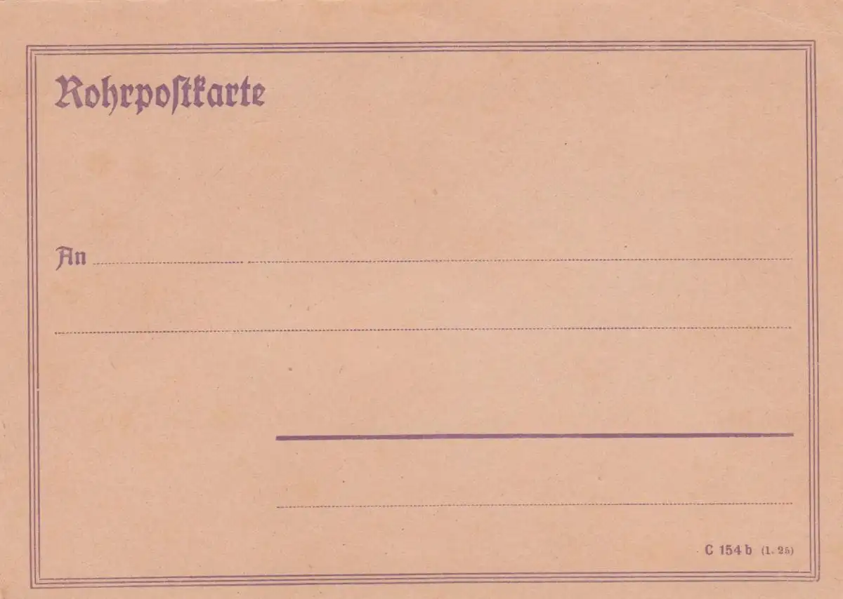 Formulaire carte de courrier tubulaire, non utilisé.