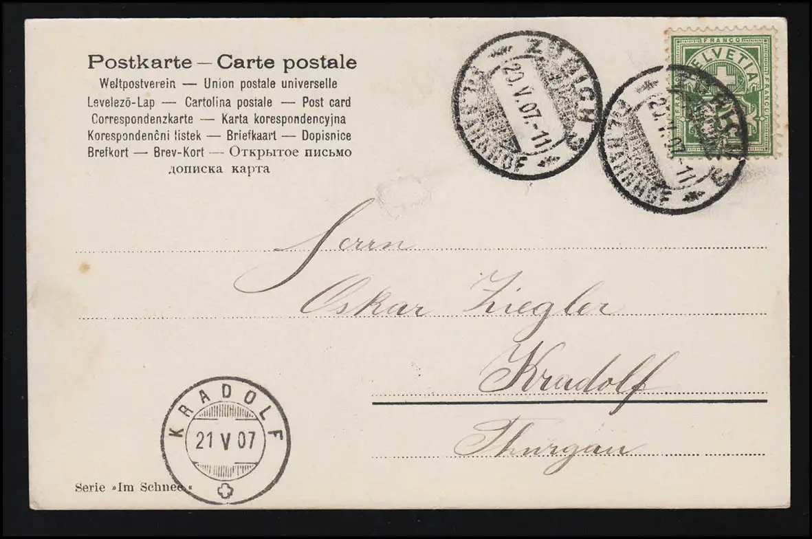 Photo AK Série "Dans la neige" Madame Manteau Hut, ZÜRICH / KRADOLF 21.5.07