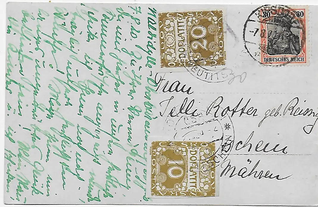 Photo Carte 1920, Kirsdorf, frais supplémentaires Marques Moravie