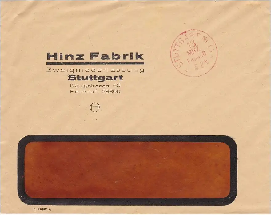 Frais payés: Hinz Fabrik Stuttgart, Königstrasse
