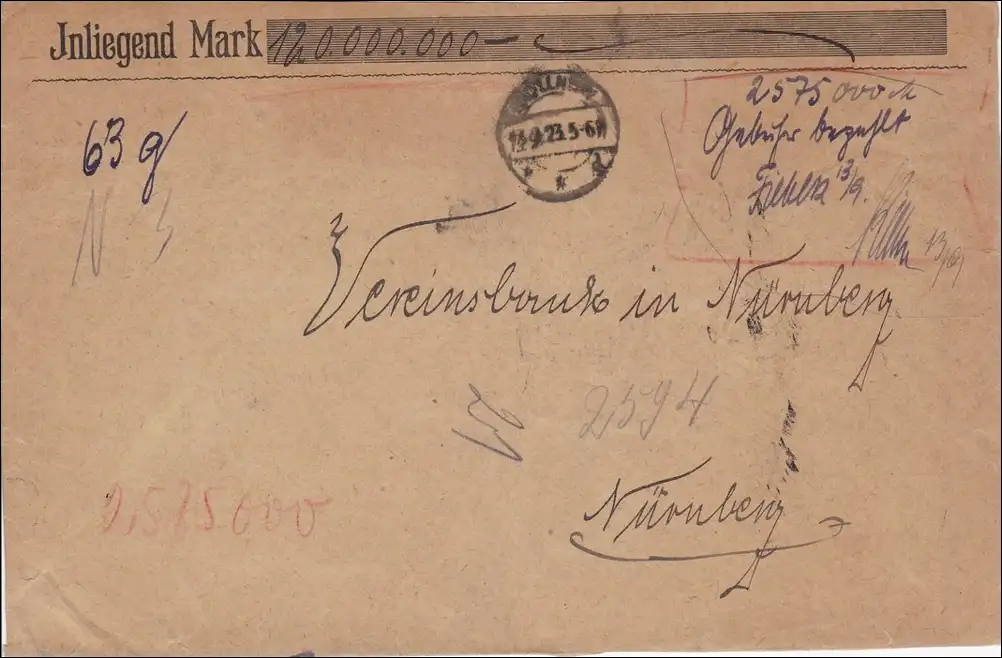 Frais payés: Lettre Werbild 1923, Hangdung confirmé, à Nuremberg