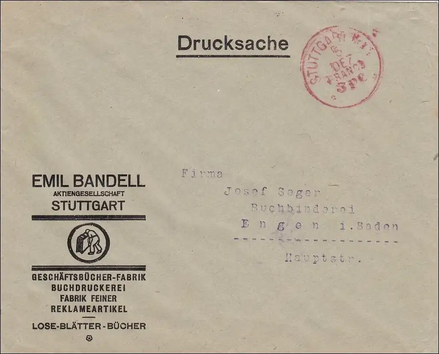 Frais payés: article de publicité, lettre d'impression de Stuttgart à Engen, Franco