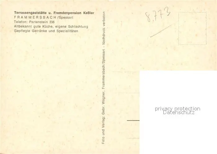Frammersbach Terrassengaststaette Fremdenpension Kessler Panorama Frammersbach postalisch nicht gelaufen nach 1965 Erhaltung siehe scans [KathaD81] Kathoren