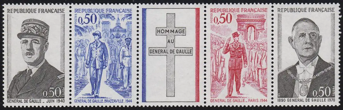 France 1772-1775 Premier anniversaire de la mort de Charles de Gaulle 1971, tranches de cinq **