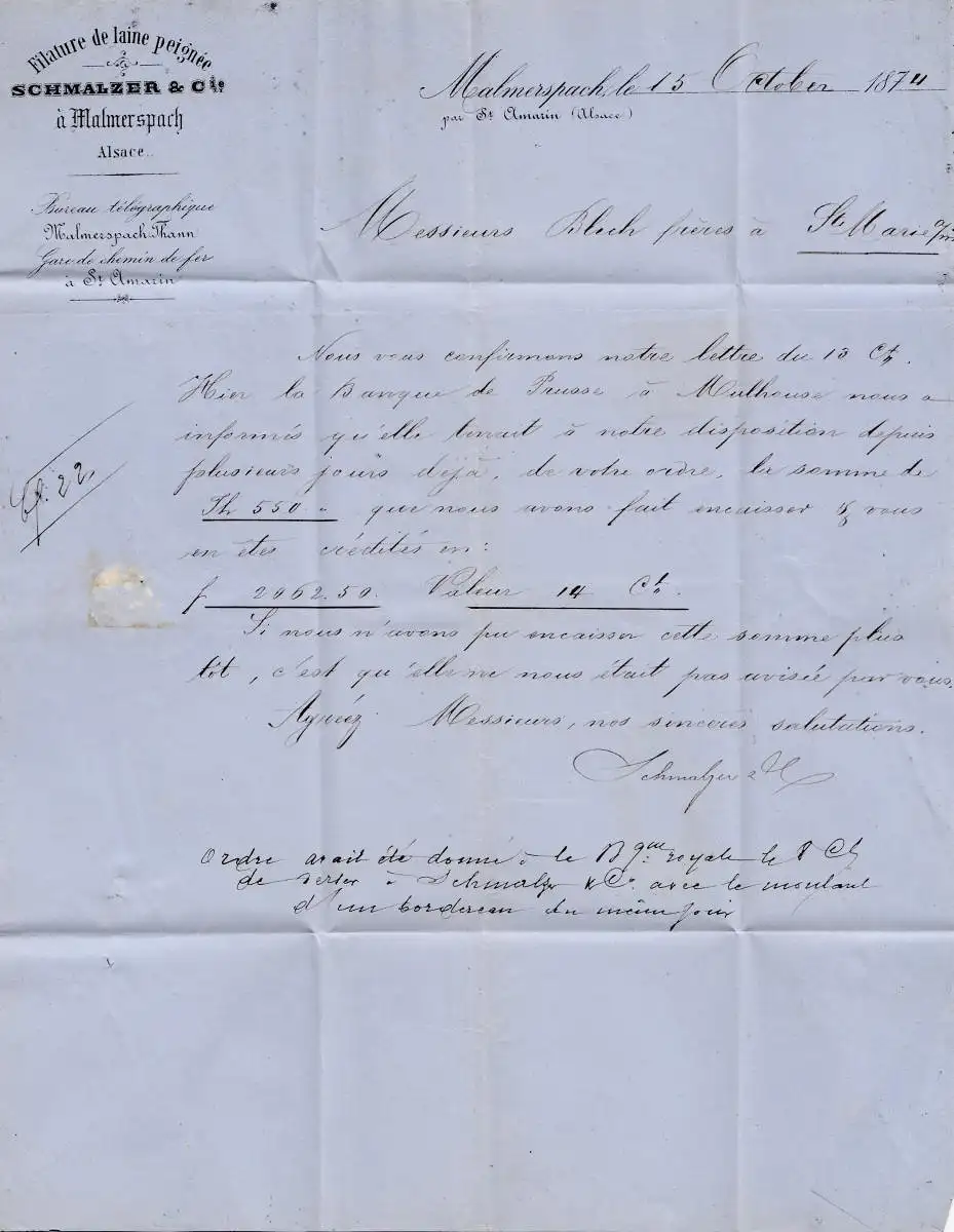France: 1874: Malmerspach/St. Amarin vers Markirch/st Marie