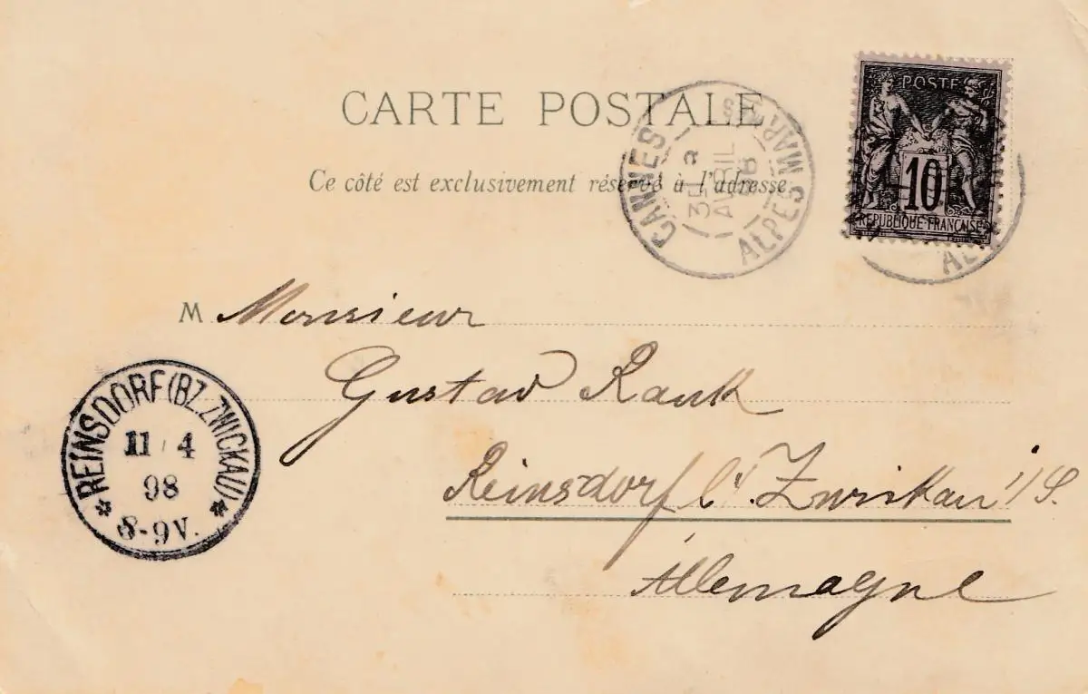 France: 1898: Carte de Menton vers l'Allemagne