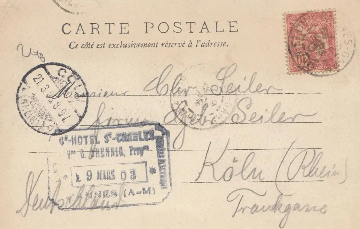 France: 1903: Carte Postale Nice vers Cologne