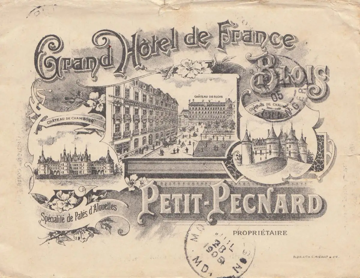 France: 1905: Petit-Pecnard - Hotel de France vers les États-Unis