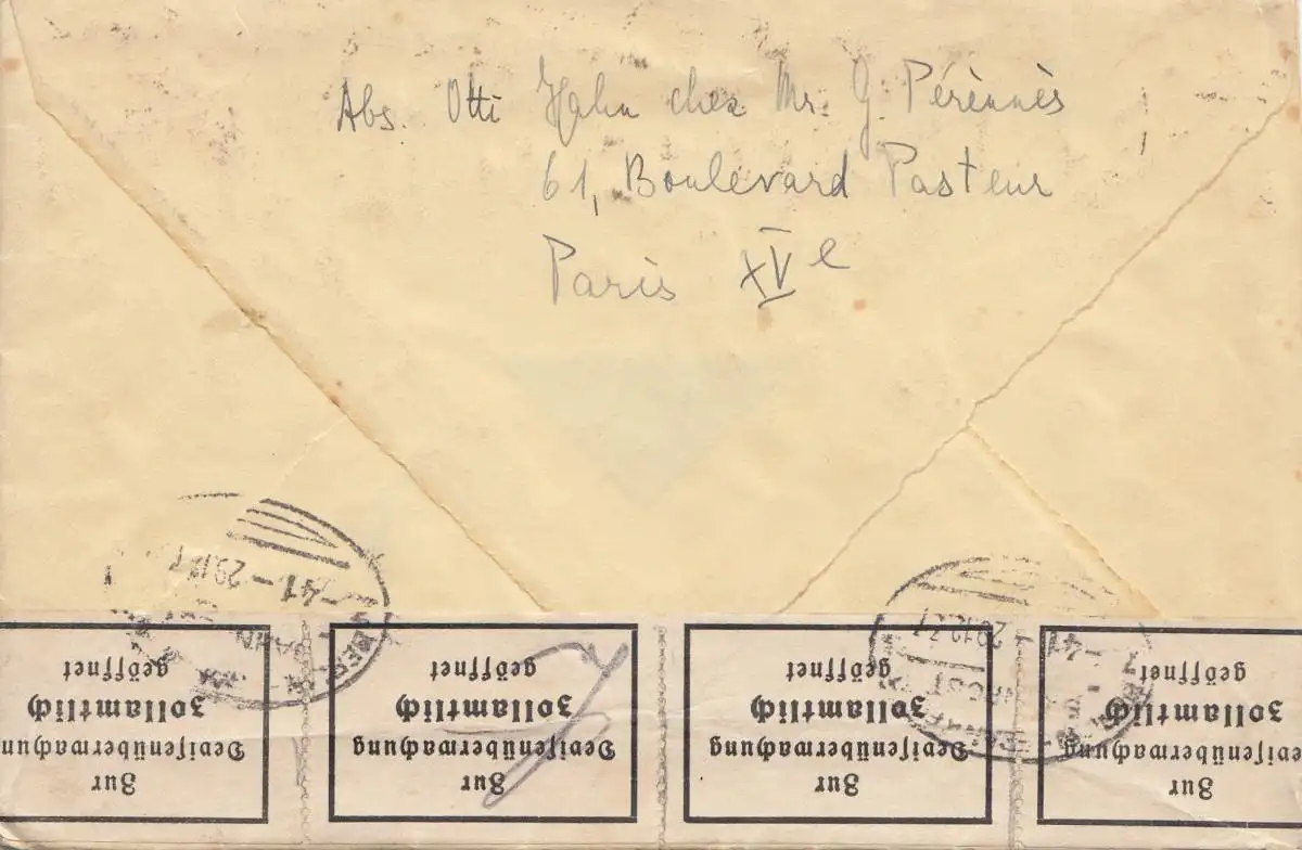 France: 1937: Paris après Chemnitz - Douanes Ouverture