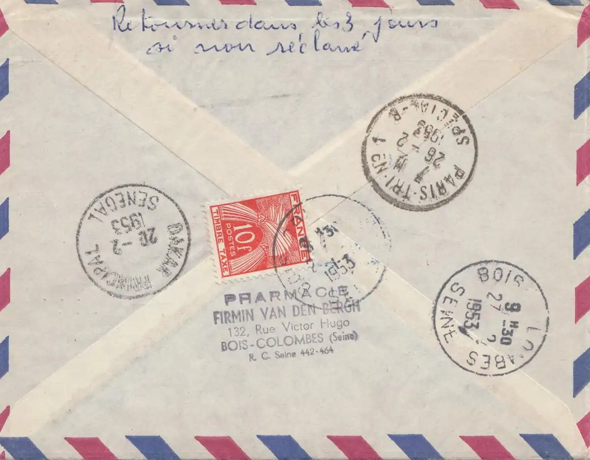 France: 1953: Lettre postale aérienne Paris - Dakar/Sénégal