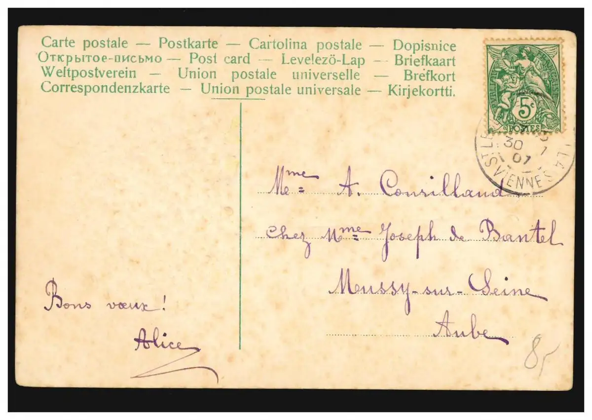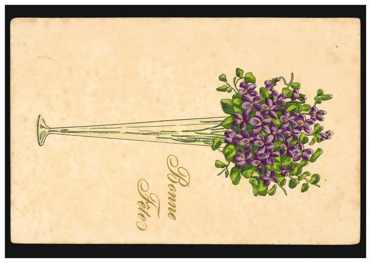 France Carte d'anniversaire de Bonne Fête au bouquet de violette dans le vase, 30.7.1907