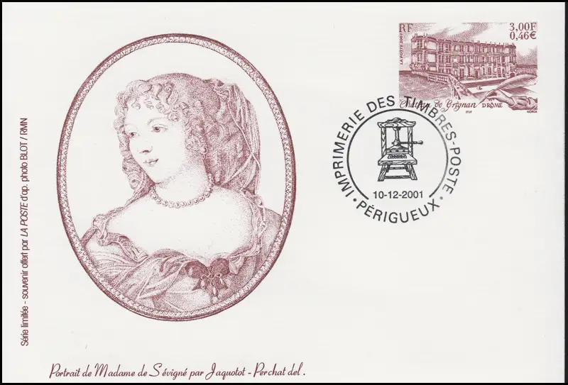 France Carte postale Château de Grignan & Portrait avec ESSt PERIGUX 10.12.2001