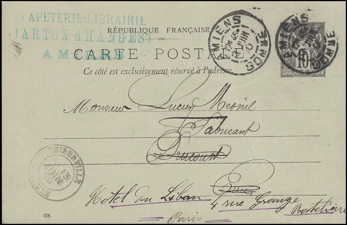 France Carte postale P 11 Allegorie DV 006 AMiens 13.6.1900 n.THIEBERVILLE 13.6.