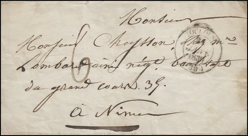 France Lettre préphilatele TOULOUSE 24.1.1839 selon Nimes/Nisme 22.1.183