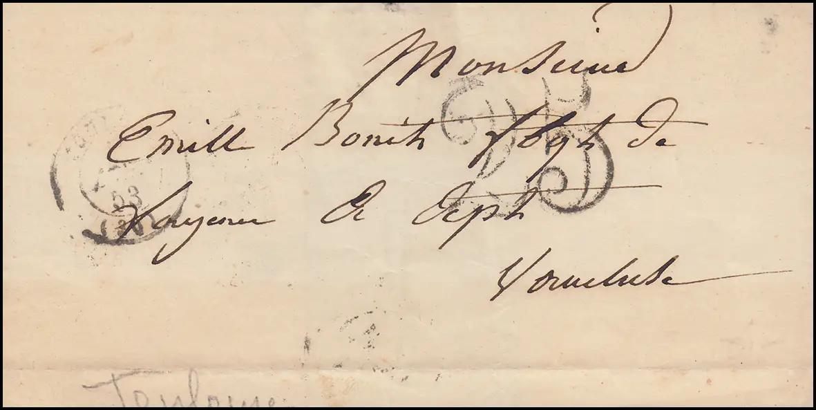 France Porte-lettre préphilatelie TOULOUSE 8.1853 avec grand 25 selon Apt