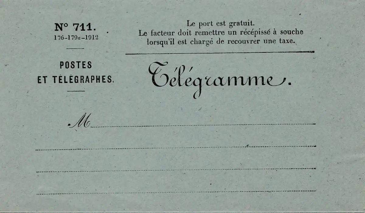 France: formulaire de télégramme. .