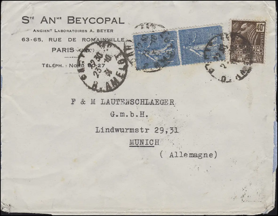 France 168 Semeurs + 258 Exposition coloniale Bf. PARIS 23.10.31 à Munich