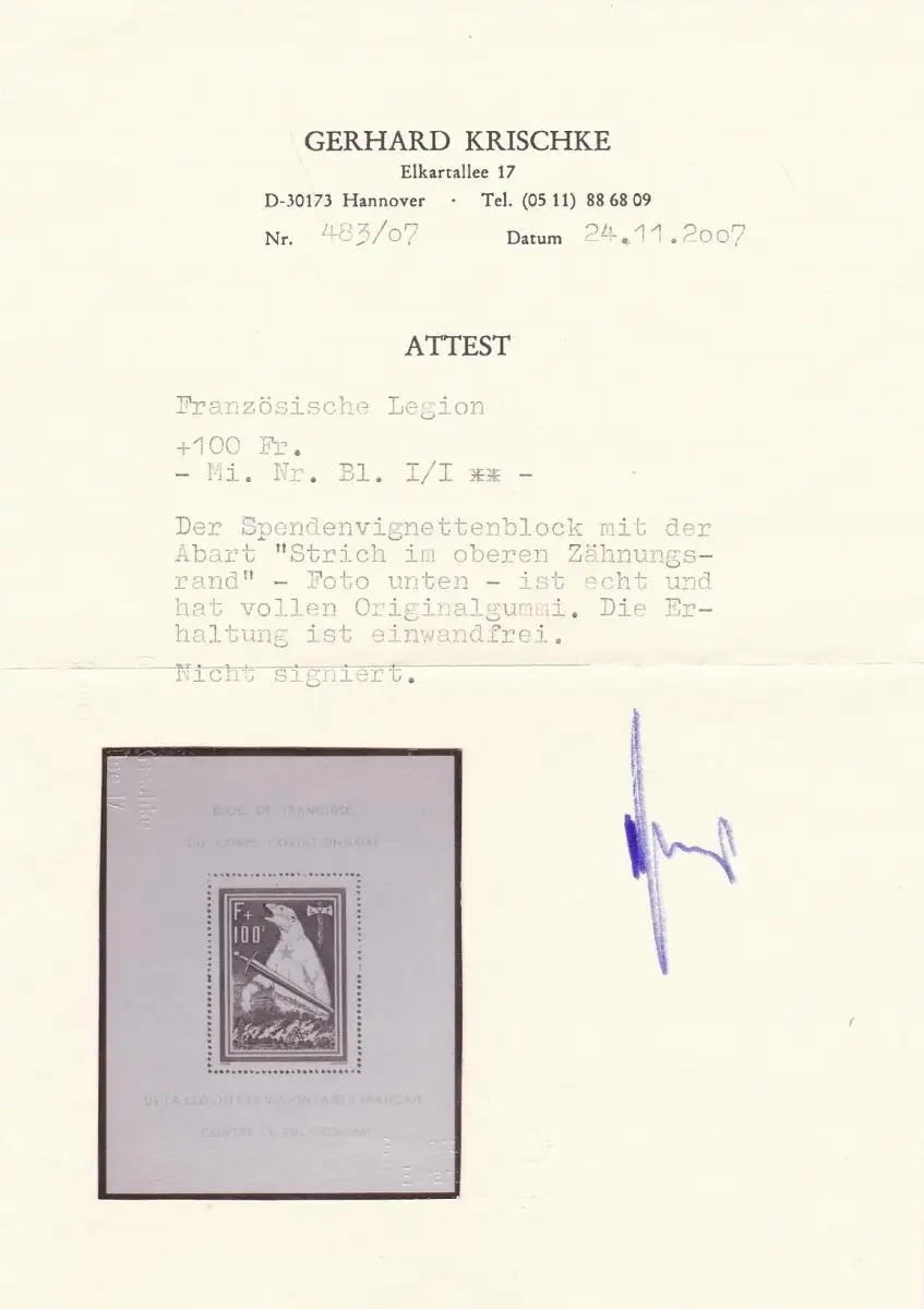 France: bloc I/I, frais de port, **, Attest Krichke