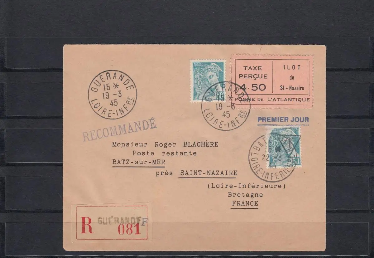 France: Lettre recommandé Guerande to Saint-Nazaire, 19.3.1945
