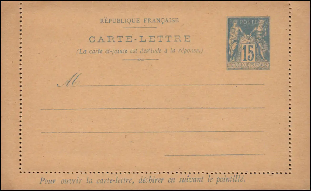 France Lettre de carte K 12II Carte double sans date d'impression 1896, non utilisée **