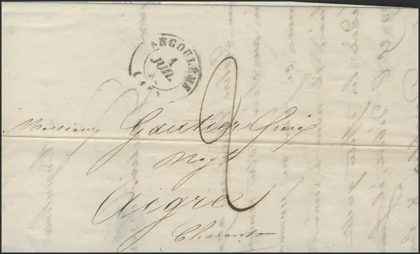 France Vorphilatelie Lettre d'information Angoulême 1.7.1841 vers Aigre 3.7. 1841