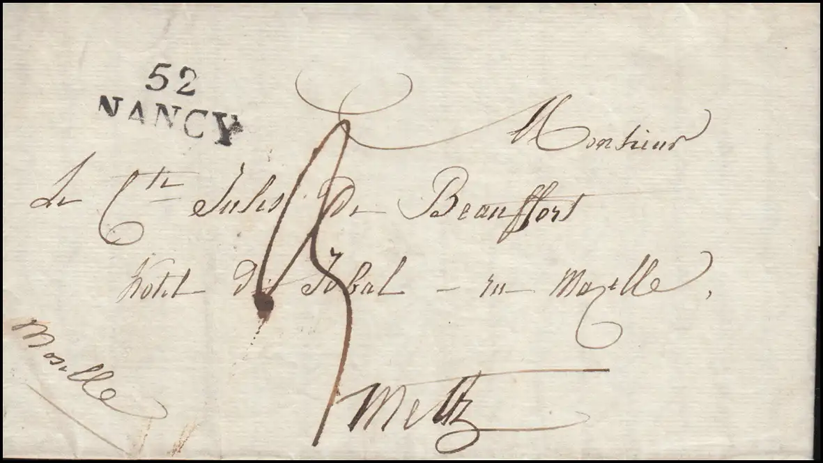 France Préphilatelie blackzeiler 52 NANCY écrit le 10.1.1827