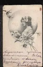 Frau. Künstlerkarte - Gelaufen 1906. Fleck. Oben links kl. Verlust. (Schöne Frauen).