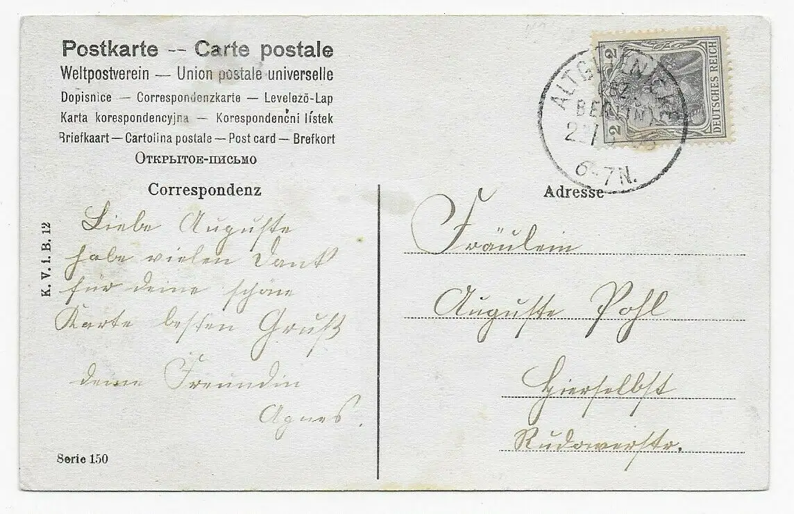 Carte postale pour femmes K.V.L.B. Serie 150, Altglienecke/Berlin 1906
