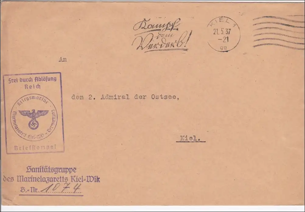 Libre par remplacement ..: Hôpital Marine Kiel-Wik au 2ème amiral de la mer Baltique 1937