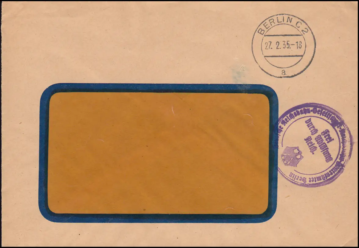 Libre par remplacement Reich BS Rail-Gesellschaft Fensterbrief BERLIN 27.2.35