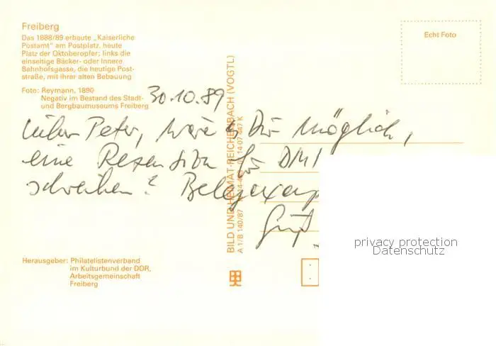 Freiberg_Sachsen Kaiserliches Postamt am Postplatz Freiberg Sachsen postalisch nicht gelaufen 1989 Erhaltung siehe scans [WerneD78] WernPID7