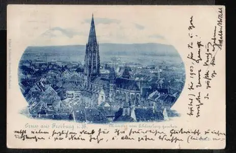 Freiburg. Münster vom Schlossberg gesehen - Gelaufen 1903. (NPLZ 79000).