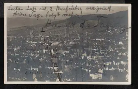 Freiburg. Panorama - Gelaufen 1931. Rückseite etwas fleckig.. (NPLZ 79000).