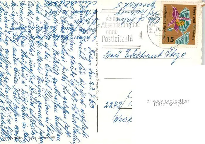 Freiburg_Breisgau Neue Universitaet Freiburg Breisgau postalisch gelaufen 1963 Erhaltung siehe scans [WerneD78] WernPID7