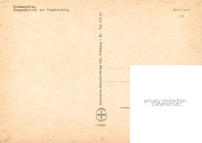 Freiburg_Breisgau Siegesdenkmal am Friedrichsring Freiburg Breisgau postalisch nicht gelaufen 1921-1965 Erhaltung siehe scans [FriedD77] Frierer