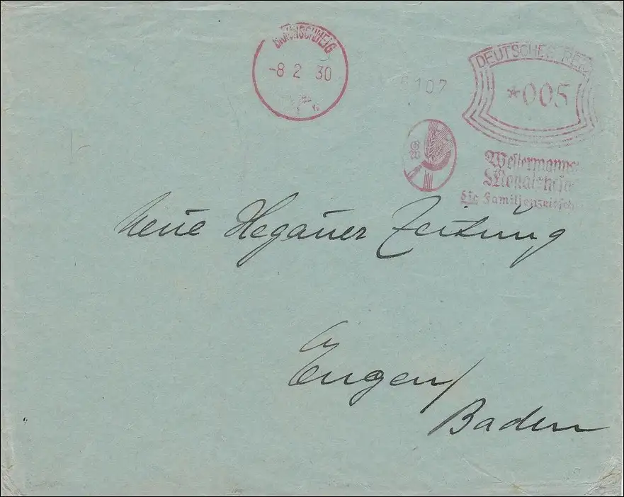 Timbre libre: Revue familiale Bulletins mensuels Braunschweig d'après Engen 1930