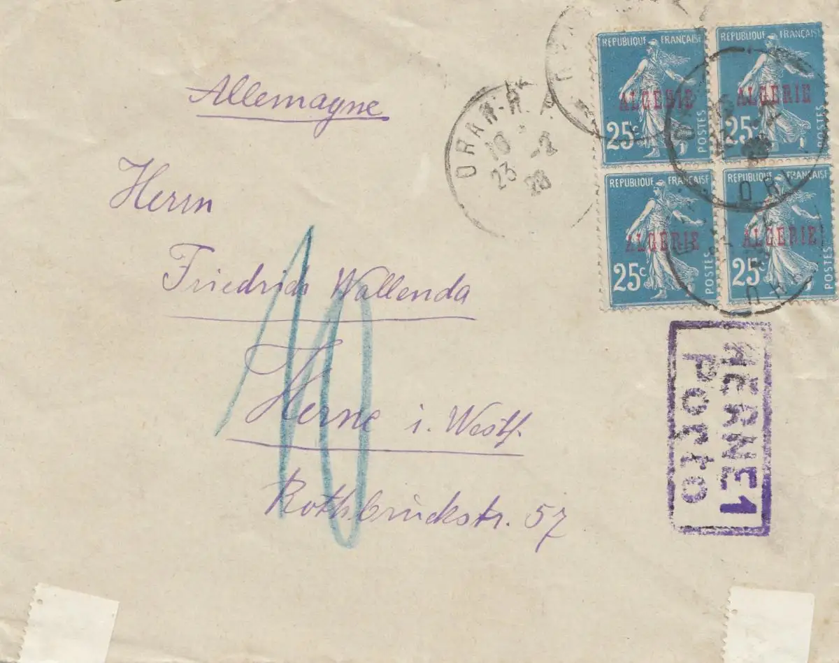 French colonies: Algérie 1926: Palais de Cristal to Herne - Taxe