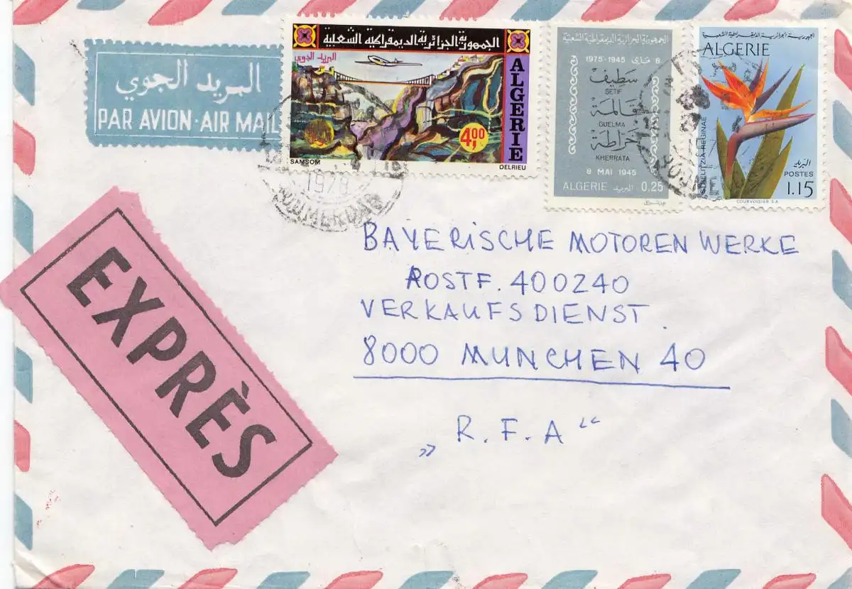 French colonies: Algerie expres Boumerdes 1978 to BMW Munich