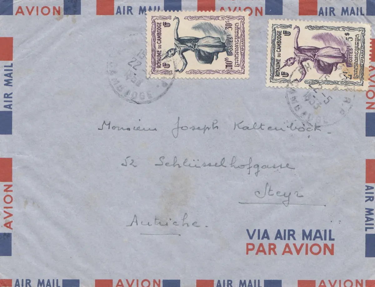 French colonies: Cambodge 1953 via air mal to Steyr/Austraia