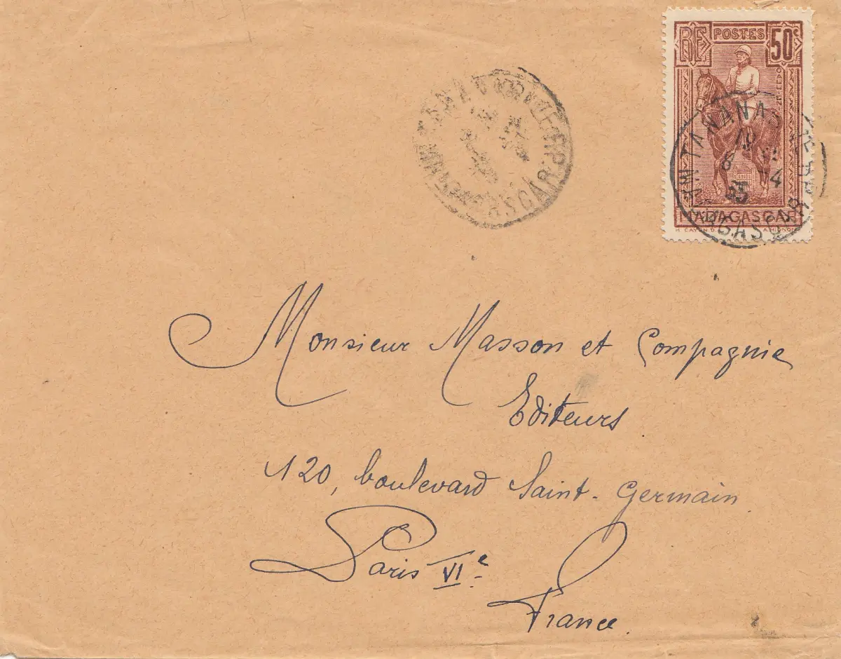French colonies: Madagascar 1935: letter to Paris