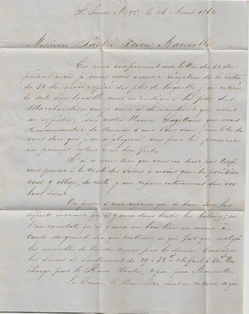 French colonies: Martinique - Saint Pierre 1864 to Marseille