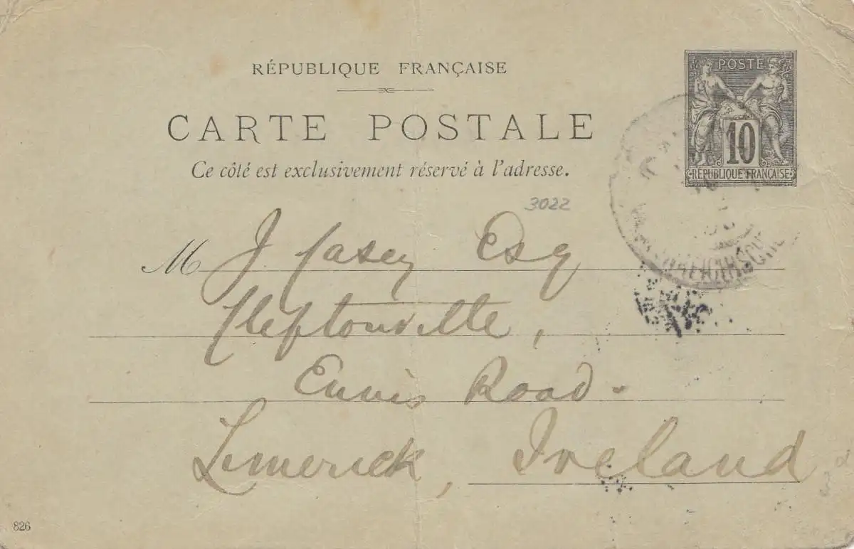 French post office: 1927 Crète: Post card to Ireland