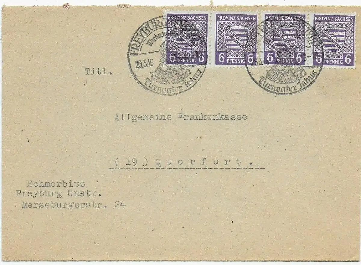 Freyburg 1946 avec le timbre spécial Turnpater Jahn à Querfurt