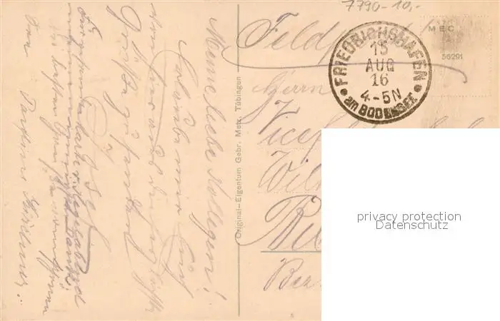 Friedrichshafen_Bodensee Alpenpanorama aus der Vogelperspektive Friedrichshafen Bodensee postalisch gelaufen 1916 Feldpost Erhaltung siehe scans [FriedD77] Feldpost Frierer