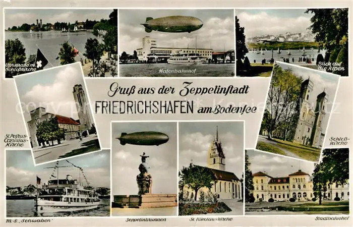 Friedrichshafen_Bodensee Zeppelinstadt Kirchen Luftschiffe Bahnhof Friedrichshafen Bodensee