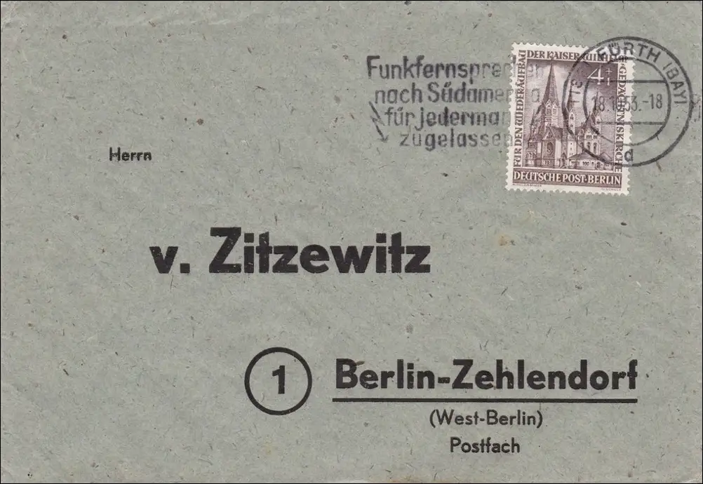 Fürth vers Berlin - timbre publicitaire 1953 Radiophone en Amérique du Sud