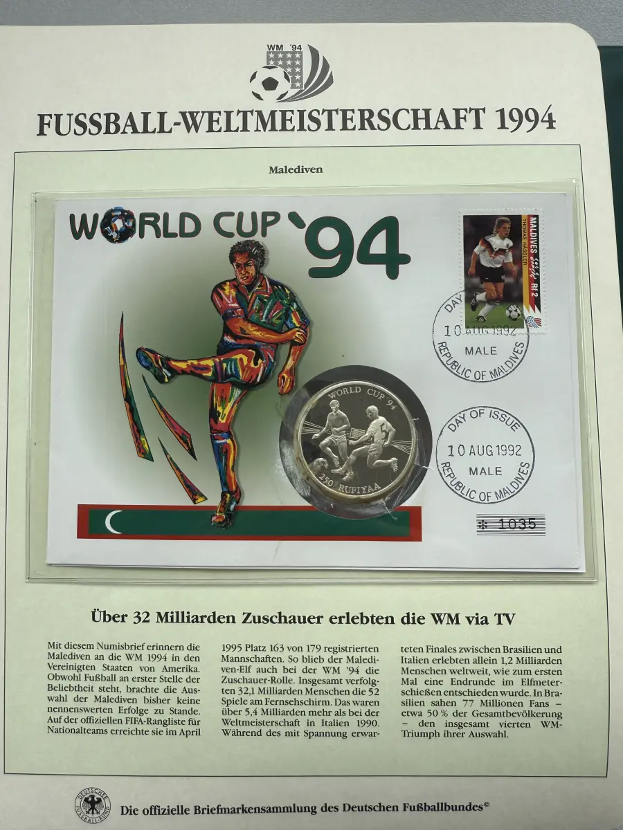 Fußball-WM 1994 USA - Numisbrief Malediven, Silber, 38,6 mm