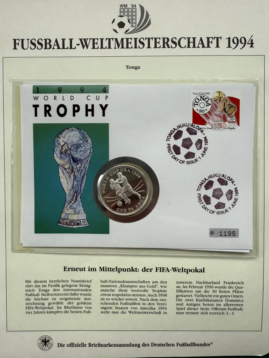 Fußball-WM 1994 USA - Numisbrief Tonga, Silber 925, 38,6 mm