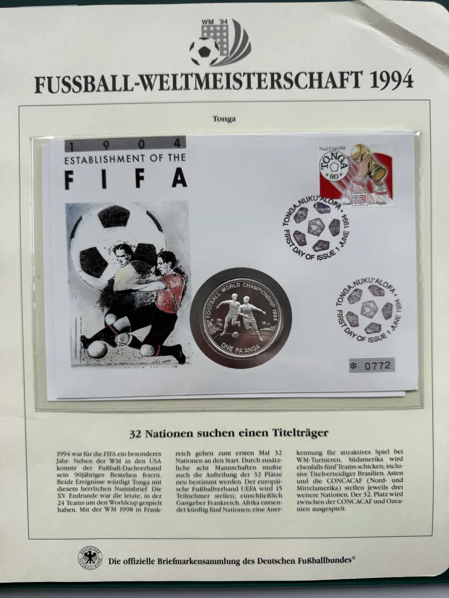 Fußball-WM 1994 USA - Numisbrief Tonga, Silber 925, 38,6 mm, 31,4g