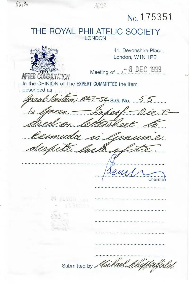 GB 1847: # 7b, SG 55, Bank of England to Bermudes, several certificates